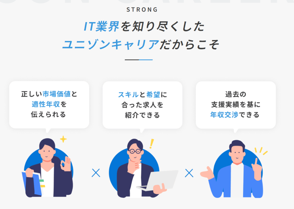 ユニゾンキャリアは、IT・Web業界に特化した転職エージェントです。