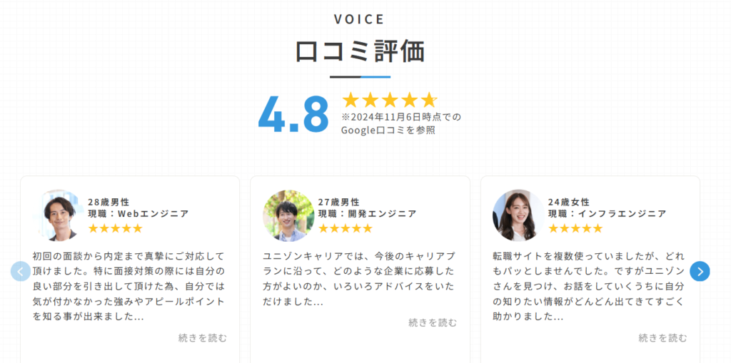 → サポートの質に満足する声が多いです